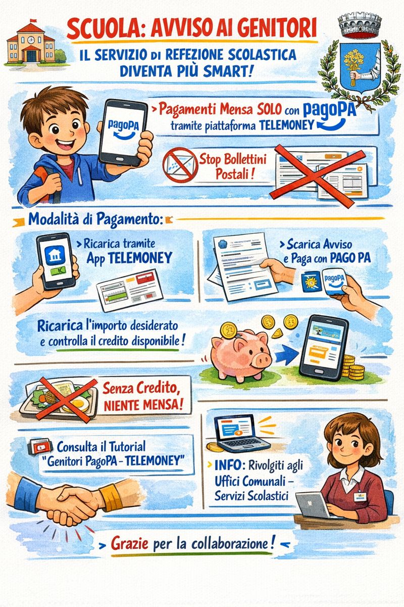 Il pagamento è ora integrato nella piattaforma TELEMONEY, utilizzata per la prenotazione dei pasti.